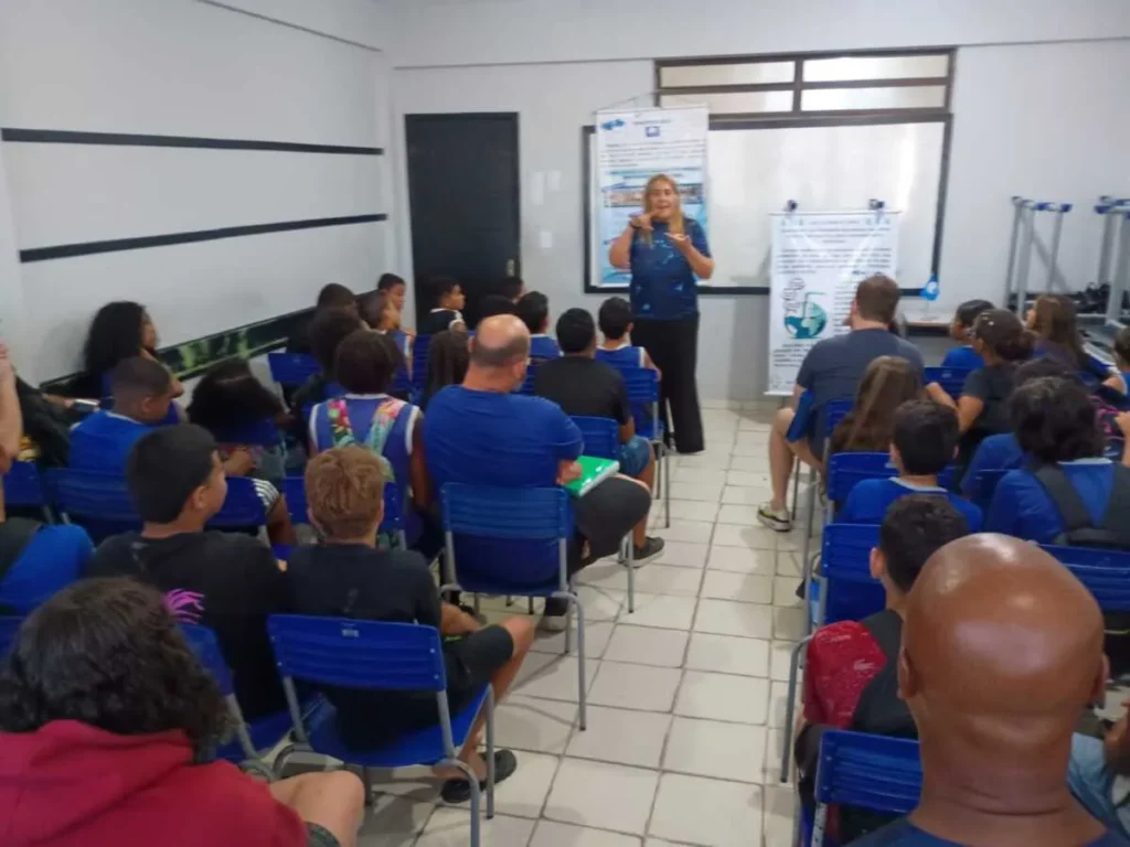 Durante o encontro, a coordenadora local do programa Bandeira Azul, Andreia Nogueira, conduziu uma palestra sobre a fauna e a flora da região, abordando a importância da preservação dos ecossistemas locais e relacionando o tema aos Objetivos de Desenvolvimento Sustentável (ODS). A atividade também destacou a importância da participação da comunidade escolar na preservação ambiental e no cuidado com o território onde vivem.