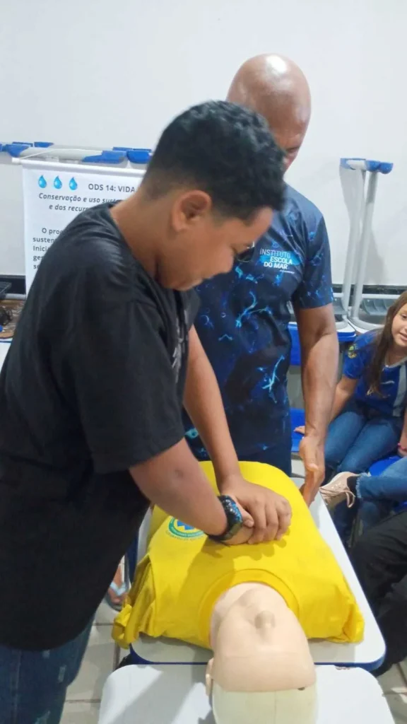 A programação contou, ainda, com a participação do professor Osni Guaiano, do IEMAR, que ministrou uma atividade sobre noções básicas de segurança e primeiros socorros. O módulo será mantido nas próximas edições do projeto, com o objetivo de orientar os alunos sobre prevenção de acidentes e procedimentos básicos de segurança, tanto em ambientes naturais quanto no cotidiano escolar.